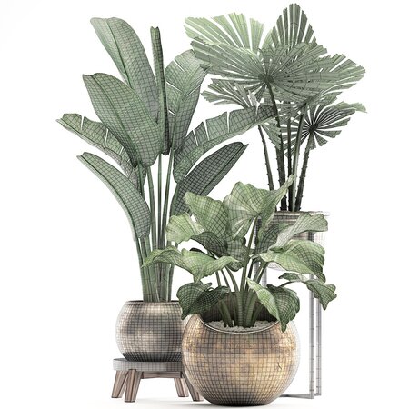 Collection of Exotic Plants in baskets and monstera pots 3D model