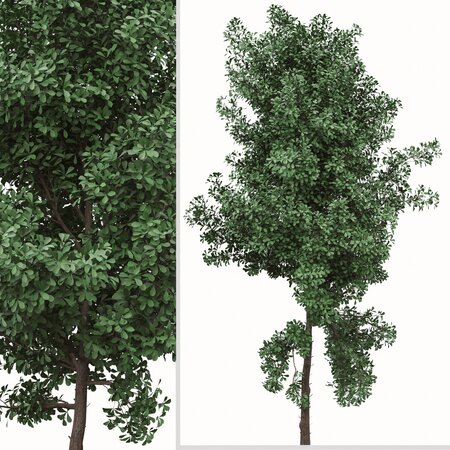 Terminalia mantaly is a deciduous or evergreen tree with conspicuously layered branches. It's crown arranged in layered tiers. Bark smooth, mottled pale grey with protruding brownish lenticlels (streaks or spots). Leaves slightly glossy green, spathulate, uneven to crenate margins. Suitable as ornamental tree along streets and in parks, due to formal neat appearance, especially majestic if planted in masses. Used for reforestation in native Madagascar. Fast-growing on good sites.