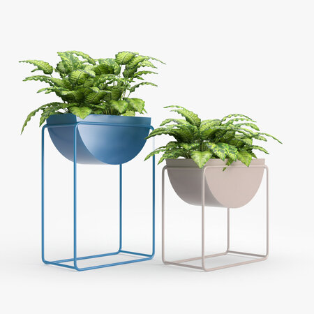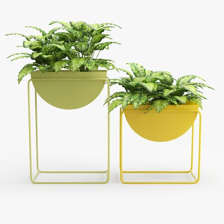 Characteristics: Set of 2 fiberglass and resin pots with ironwork base Half Medium measurements: (l x h x w) 64 x 33 x 64 cm. (5.5kg) Half Large measurements: (l x h x w) 64 x 33 x 90 cm. (6Kg)