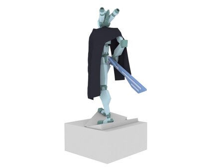 This character comes with a cloak object that animates in the wind using 3ds Max's Cloth modifier simulation. The FBX version of this character comes with the clock in its neutral "hanging" position for use in a cloth simulator of your choice.