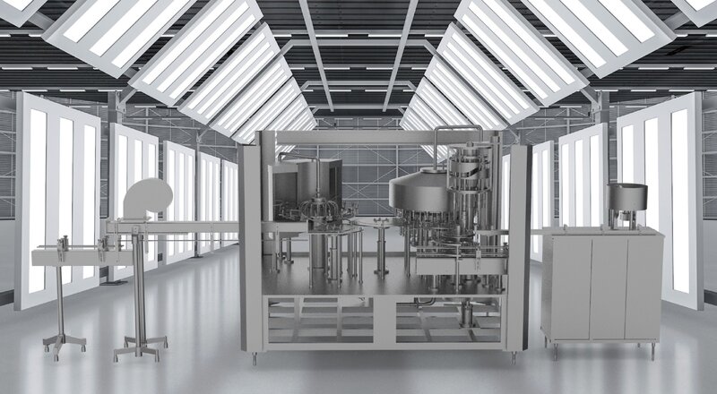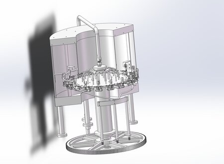 The equipment is a rotary filling machine, the machine is divided into three areas, including two rotary filling areas, can be expanded into 18 head filling. It also includes feeding line and unloading line. The equipment is a machine production equipment, can be used as a reference for designing similar products.