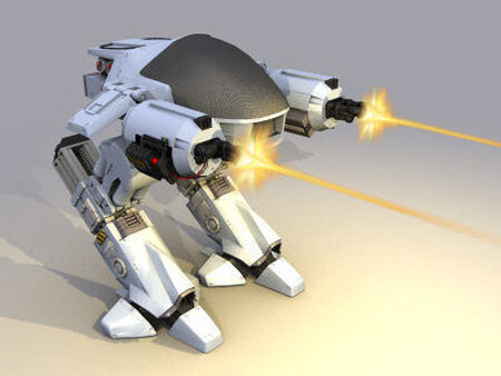 ED 209 The fearsome robot from Robocop. He has a history dependant ik solver for the legs, history independant ik solver for the arms and pivot points correctly placed on other objects to make animating easy. all textures added and It comes with a bonus 3d OCP symbol too.