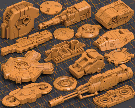 MILLENNIAL AUTOMOTIVE LLC » Our products » Space » Mega Pack Hard Surface Kitbash 300 DETAILS 3D model
