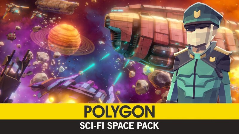 A low poly asset pack of Space ships, characters, props, weapons, FX, and environment assets to create a Sci-Fi themed polygonal style game.