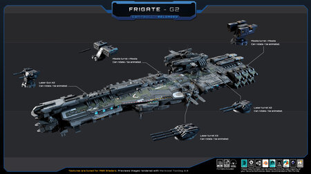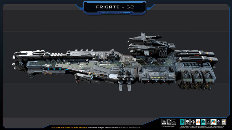 Previous model with reworked textures G2 FRIGATE reloaded, now textures are PBR compatible, added weapons, new Photoshop file, color mask, new files. Check previews for details.