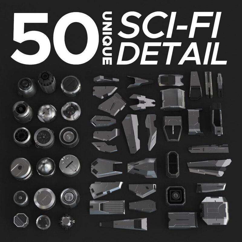 You can use this kit to create fast concepts, dress up your mecha or sci-fi models or scenes.