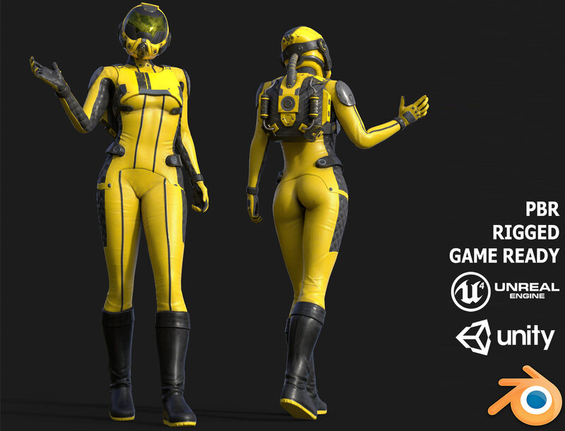 FX01 Female Sci-Fi Suit low-poly 3d model ready for Virtual Reality (VR), Augmented Reality (AR), games and other real-time apps.